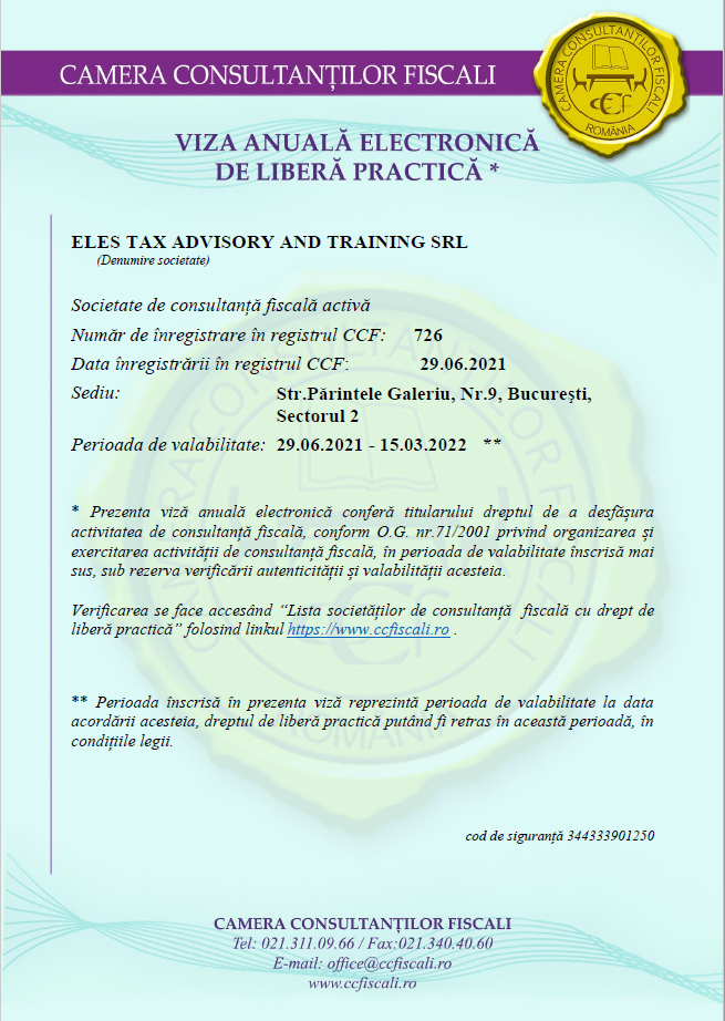 Training în domeniul impozitului pe profit; Training în domeniul taxei pe valoarea adăugată; Training în domeniul contabilității etc.